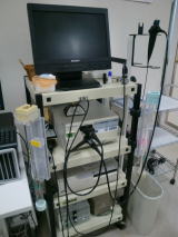 | 聞こえ具合を検査する機械です。鼓膜の動き具合も調べられます。検査は防音室内で行います。 | 耳・鼻・喉の奥を映し出す内視鏡システムです。頭頸部のがんの診断には欠かせません。 |